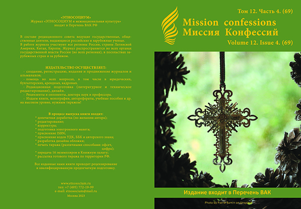 Статья посвящена рассмотрению особенностей конфессиональной культуры поволжских немцев как стратегии цивилизационного и биологического выживания в условиях «чужой среды». Вероисповедание определяло национальное самосознание, транслировало этническую идентичность немцев, оказавшихся в Поволжье. Повседневная жизнь переселенцев выстраивалась в соответствии с традиционным религиозным укладом общины, становление которой было неразрывно связано с кирхой. До наших дней сохранились артефакты религиозного культа, фотографии, детали интерьера переселенцев, эпистолярное наследие священства – все эти объекты напоминают о благородной миссии евангелической церкви в годы образования общин. Реконструируется картина религиозного бытия, в пространстве которого мирно сосуществовали как лютеране, так и католики. Семиотический метод исследования выявленных объектов позволил реконструировать образ исторического конфессионального прошлого; обнаружить в нем следы немецкой национальной культуры на символическом, визуальном, семантическом, художественном уровнях, а так же на уровне музыкального искусства.