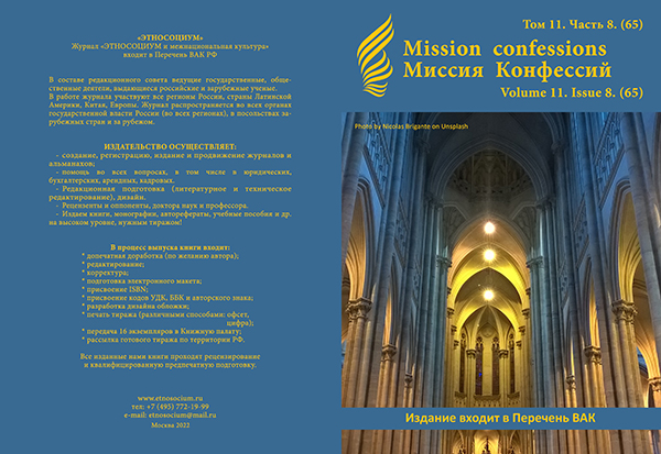 Фроленкова И.Ю. - аспирант кафедры государственно-конфессиональных отношений. Российская академия народного хозяйства и государственной службы при Президенте Российской Федерации (РАНХиГС).